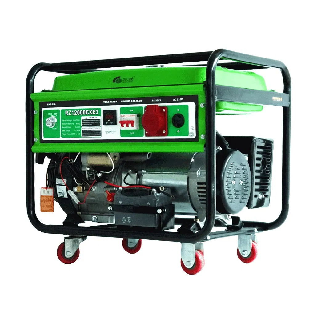 Product Description:ModelTechnical ParametersRZ12000CX3/CXE3Unit structure: frame type, four wheelsRated power: 8KW/10KVAMaximum power: 9KW/11KVARated frequency: 50Hz/60HzRated voltage: 220V/380VPhase number: single/3 phasesExcitation mode: Brush,AVR automatic adjustmentFuel tank capacity / working ......